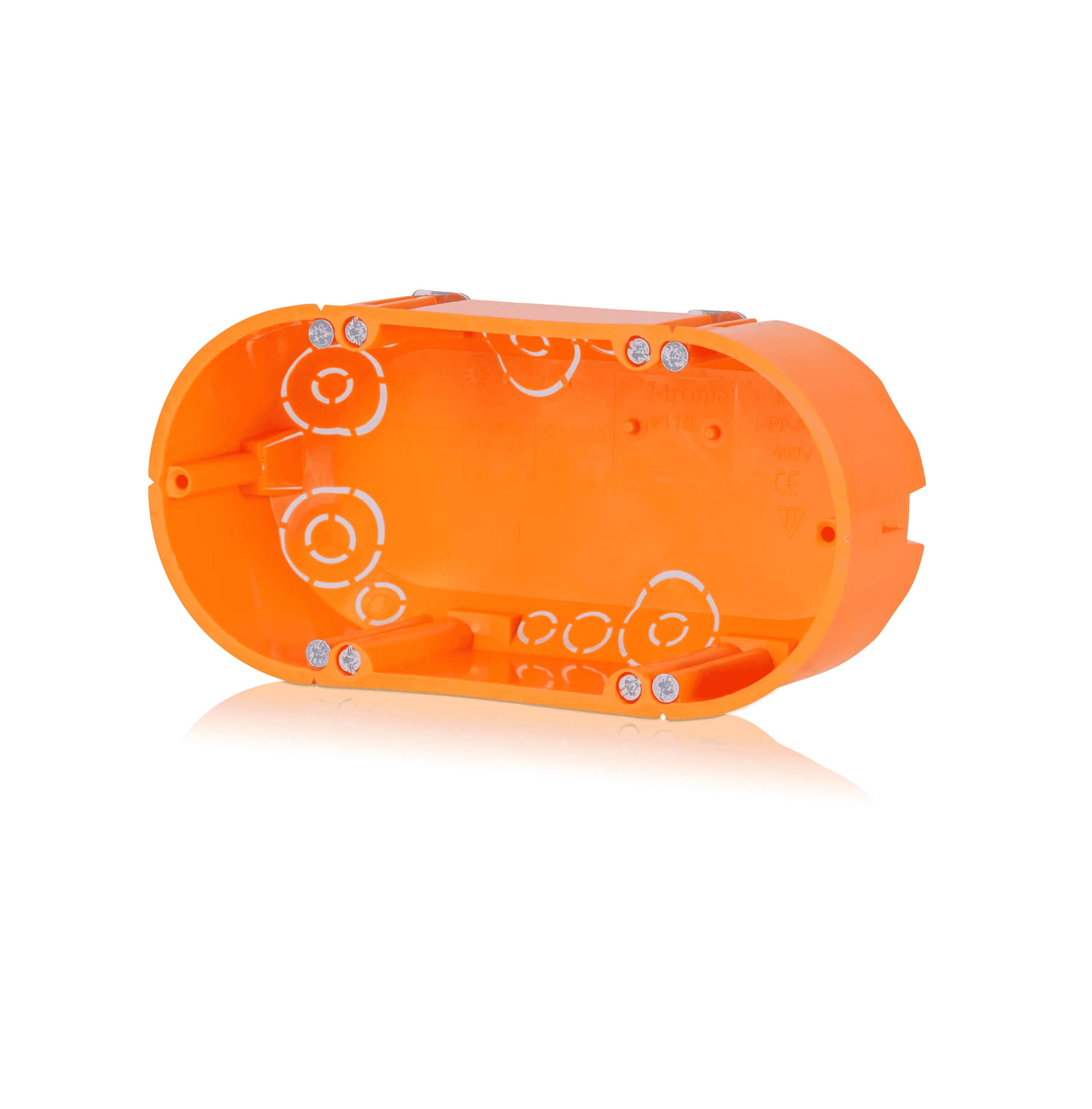- F-TRONIC 7350041 E118 Přístrojová krabice do dutých stěn, 2násobná, průměr frézovaného otvoru 2 × 68 mm, hloubka 49 mm, oranžová F-TRONIC 7350041 E118 Přístrojová krabice do dutých stěn, 2násobná, průměr frézovaného otvoru 2 × 68 mm, hloubka 49 mm, oranžová