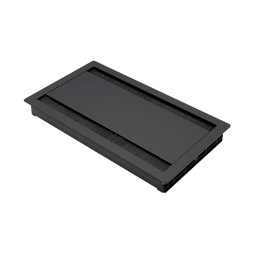 Průchodka je vyrobena z vysoce kvalitního hliníkového profilu, který zaručuje mimořádnou pevnost a odolnost proti mechanickému poškození. Její minimalistický vzhled se elegantně integruje do pracovních ploch a neruší celkovou ergonomii pracoviště. Horní rám i víko jsou navrženy tak, aby po instalaci tvořily s deskou stolu kompaktní a estetický celek.
