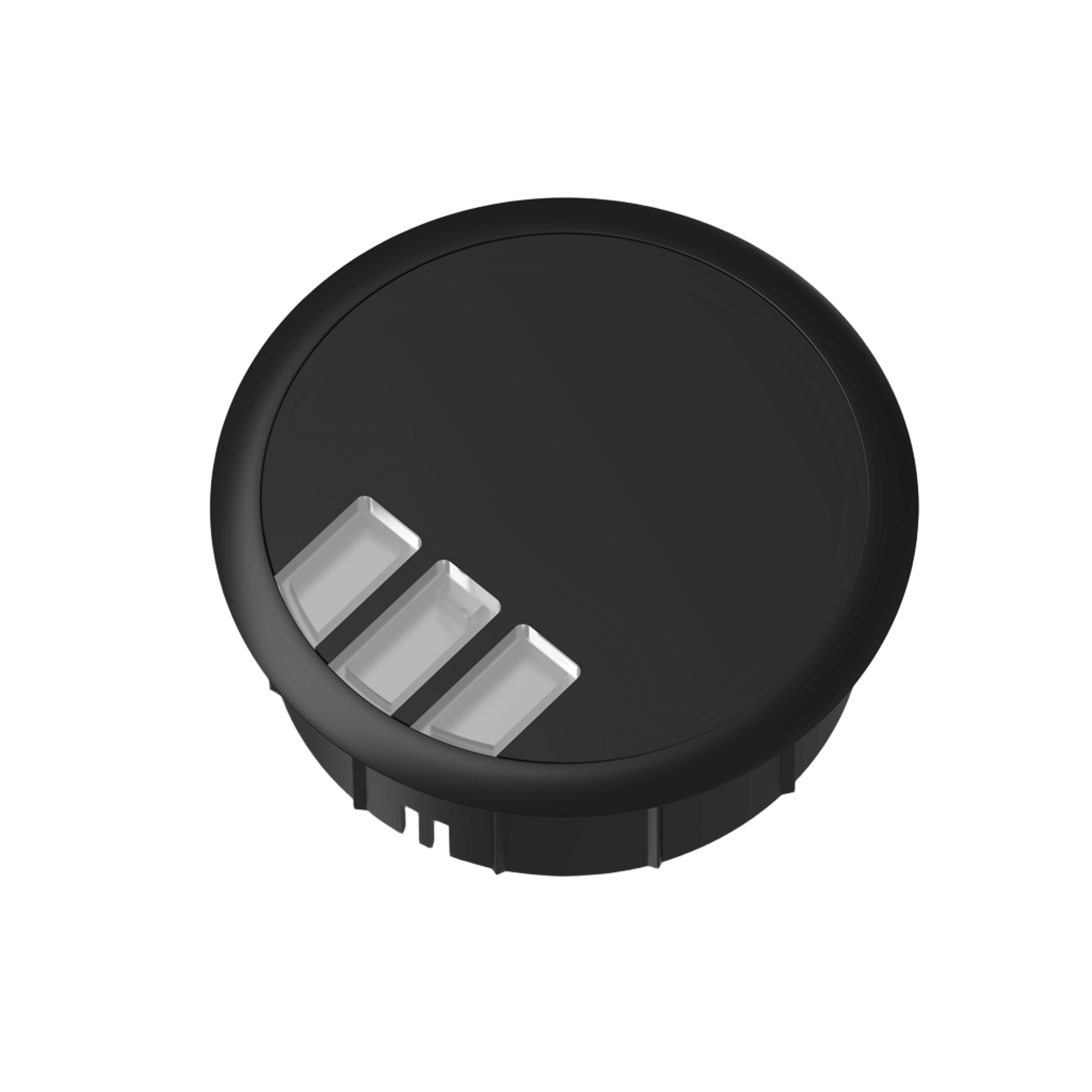 Grommet nabízí tři samostatné kabelové vývody s gumovými krytkami, které lze používat jednotlivě podle toho, kolik kabelů právě potřebujete vyvést k pracovnímu místu. Vnitřní prostor je navíc kompatibilní s datovými konektory a systémy Keystone, což umožňuje vytvořit plnohodnotné přípojné místo pro datové a multimediální přenosy přímo v podlaze.