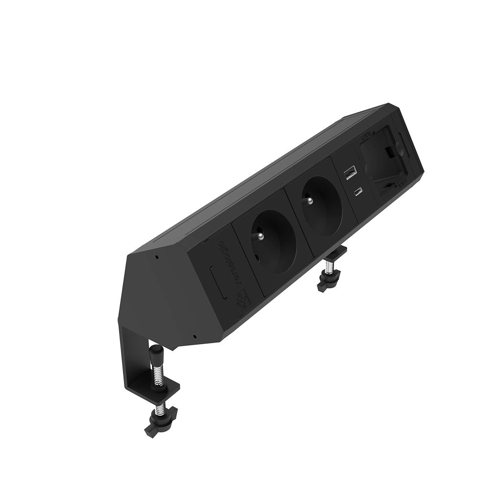 ASA 06123E00107 VERSADESK Stolní zásuvková jednotka, 2x zásuvka, 1x nabíječka USB A+C, 1x volná pozice Keystone, kabel 0,5 m s konektorem GST, černá