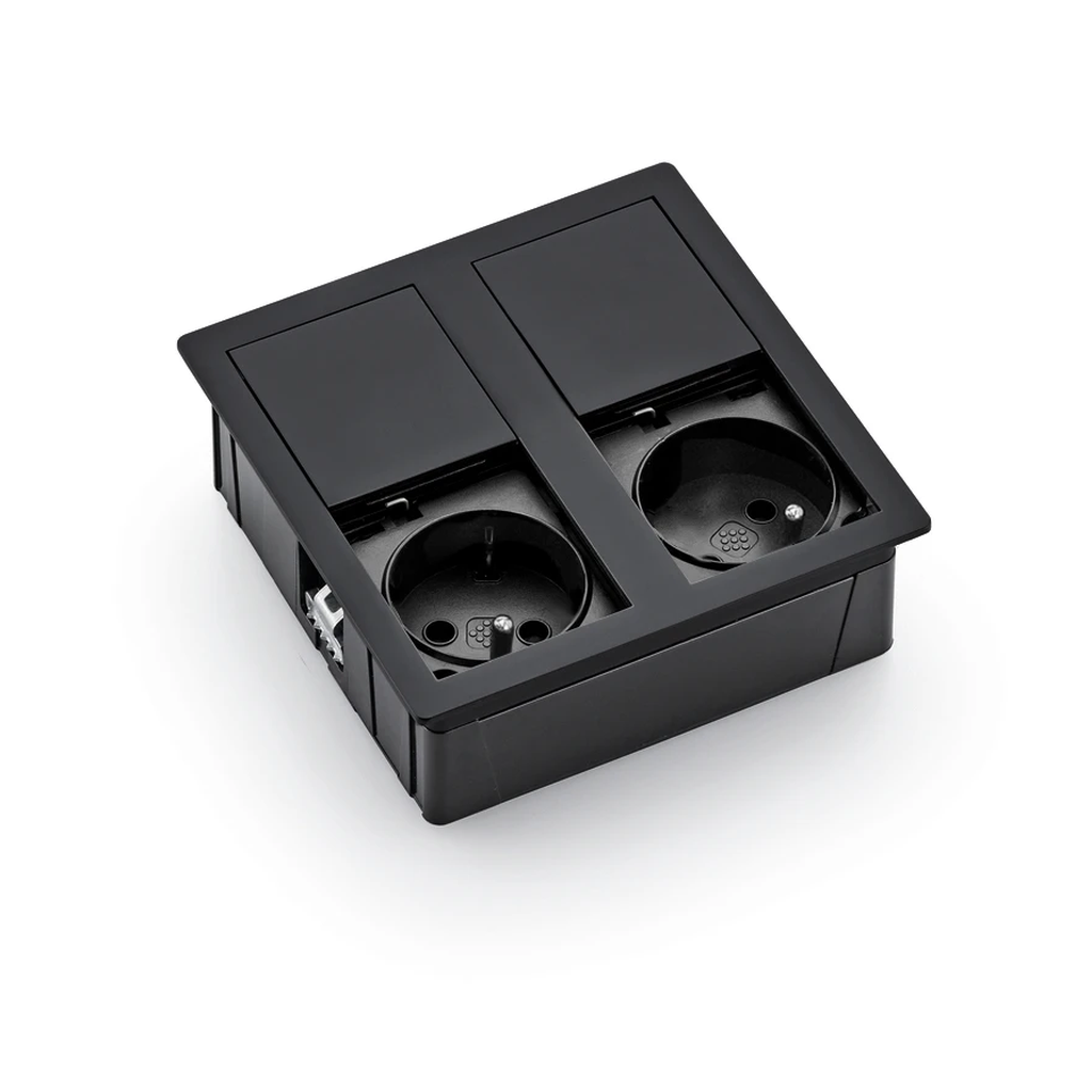 ASA 06015E00007 VERSAHIT DUAL Vestavná zásuvková jednotka, 2x zásuvka, kabel 2 m, vidlice samostatně, černá