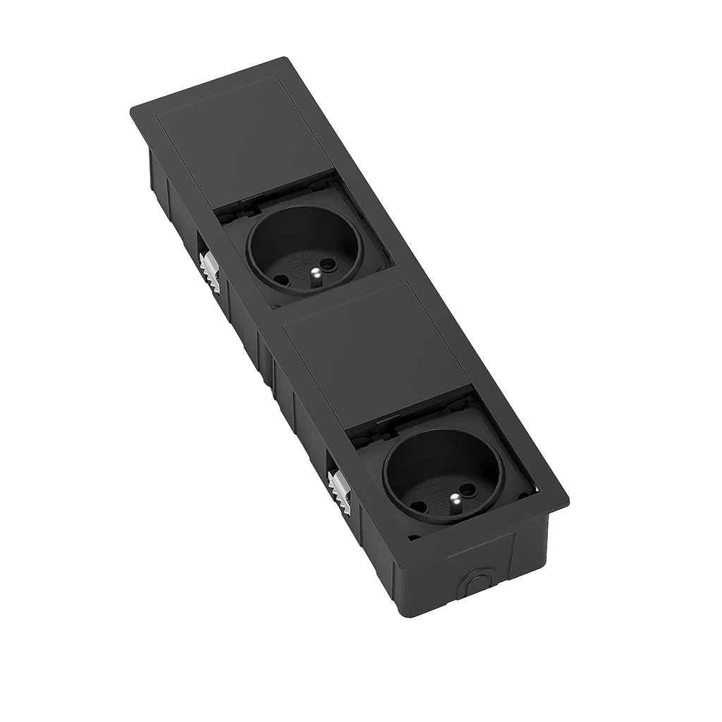 ASA 06025E00028 VERSAHIT MONO COMBI Vestavná zásuvková jednotka, 2x zásuvka, kabel 2 m, vidlice samostatně, černá
