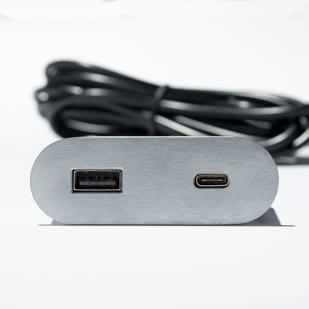 ASA 06029Z00057 VERSAPICK Vestavná nabíjecí jednotka, 1x nabíječka USB A+C, kabel 1,8 m, vč. napájecího adaptéru EU, oválná, imitace kartáčované oceli