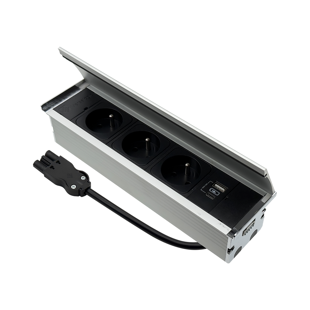 Versalid od renomovaného italského výrobce ASA Plastici představuje funkční a estetické řešení pro napájení v moderních interiérech. Tato vestavná jednotka kombinuje kompaktní rozměry s elegantním hliníkovým provedením, díky čemuž diskrétně doplňuje pracovní desky i kuchyňské ostrůvky.