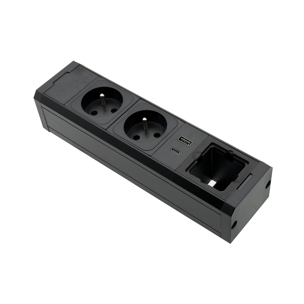 - ASA 06100E00083 VERSATEK Zásuvková jednotka, 2x zásuvka, 1x nabíječka USB A+C, 1x volná pozice, GST IN, černá ASA 06100E00083 VERSATEK Zásuvková jednotka, 2x zásuvka, 1x nabíječka USB A+C, 1x volná pozice, GST IN, černá