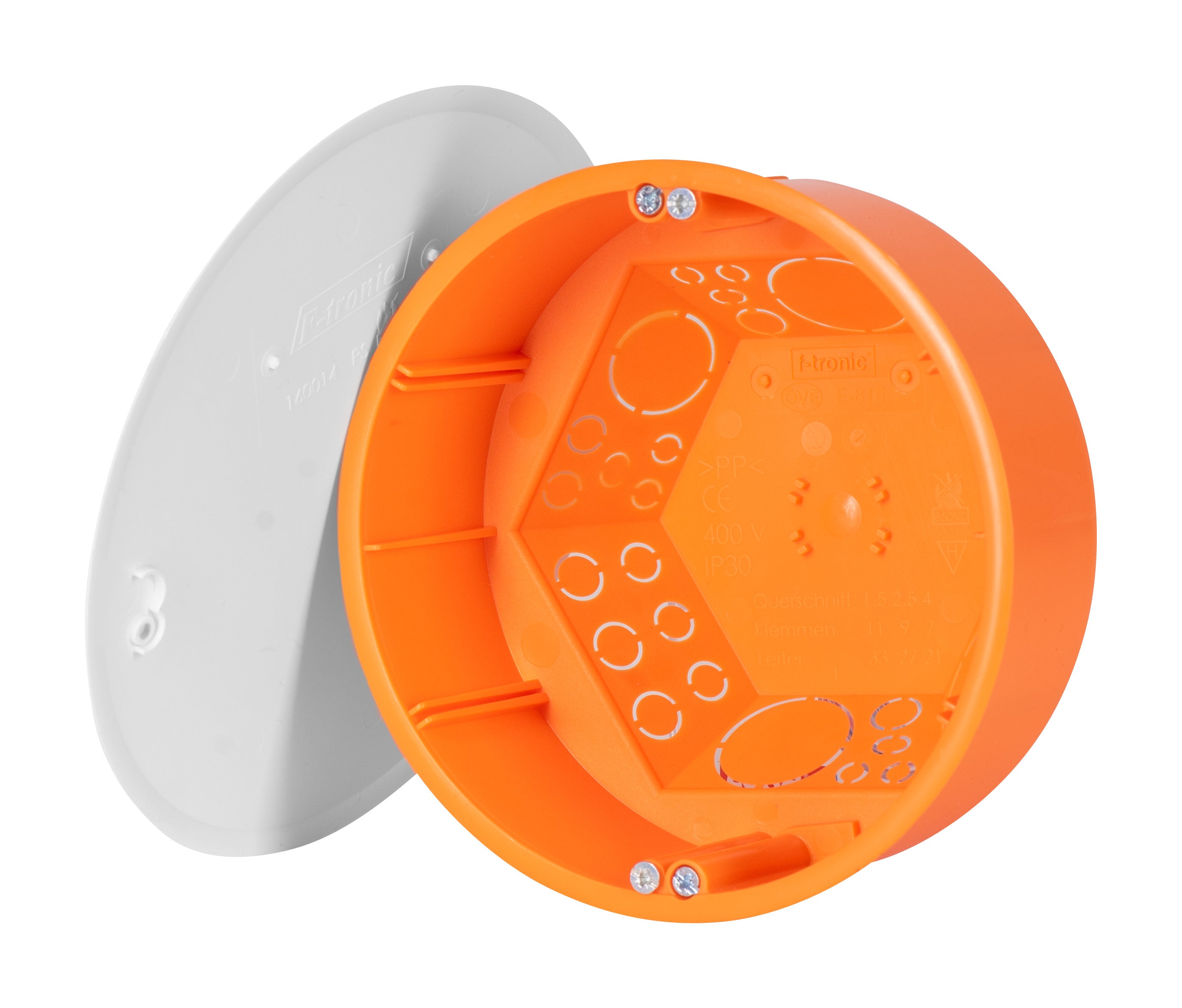 - F-TRONIC 7350046 E815 Rozbočovací krabice do dutých stěn, průměr frézovaného otvoru 120 mm, hloubka 65 mm, s víčkem, oranžová F-TRONIC 7350046 E815 Rozbočovací krabice do dutých stěn, průměr frézovaného otvoru 120 mm, hloubka 65 mm, s víčkem, oranžová