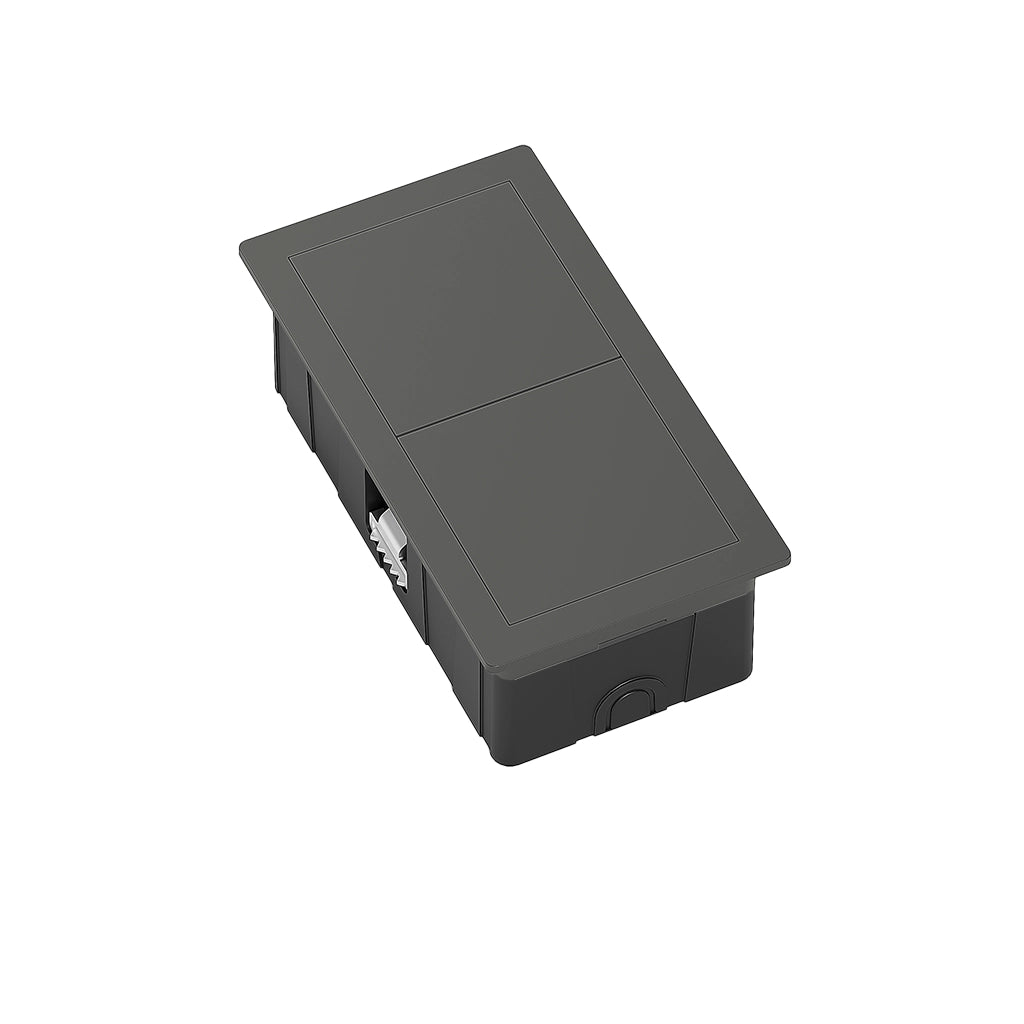 Tělo jednotky je vyrobeno z odolného technopolymeru, zatímco rámeček a ochranný kryt jsou ze zinkové slitiny Zamak, která zajišťuje pevnost, dlouhou životnost a prémiový vzhled v odstínu cínově šedá. Unikátní systém posuvného krytu umožňuje odkrýt konektory pouze tehdy, když je právě potřebujete, zatímco v nečinnosti zůstávají skryté a chráněné. Tento produkt kombinuje kompaktní rozměry a vysokou odolnost.