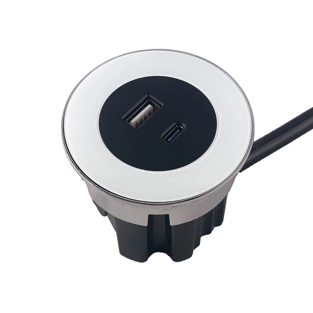 ASA 06030Y00019 VERSADOT Vestavná zásuvková jednotka, nabíječka USB A+C, délka kabelu 0,5 m, GST, bílé sklo