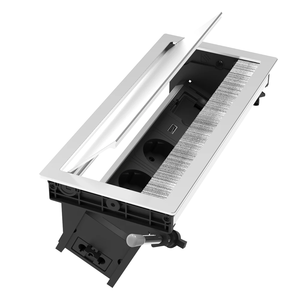 Versaflap Mono 3.0 od renomovaného italského výrobce ASA Plastici představuje špičku v oblasti vestavných napájecích systémů. Tento model vyniká svým celohliníkovým tělem a zúženou šířkou, díky čemuž zabírá minimální prostor na pracovní desce, aniž by slevoval z funkčnosti či estetiky.